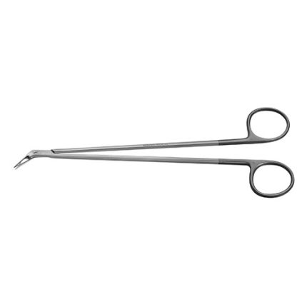 Favaloro Scissors are designed to excel in cutting vessels and tissue in cardiovascular procedures. They feature ring handles to allow for unparalleled control over tissue. They also have sharply angled blades to reach obscured vessels in the surgical field, and supercut technology, which minimize slippage and make for clean, effortless cutting. These scissors are made of operating room grade stainless steel, and are manufactured to the highest standard of instrumentation by expert craftsmen in Germany.