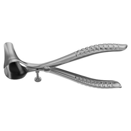 Sims (Bodenhammer) Rectal Speculum features solid blades at the end of a hinged handle and a screw mechanism to lock the blades in an open position. This allows the operator to examine the lower rectum and anus without constantly squeezing the spring handles.
