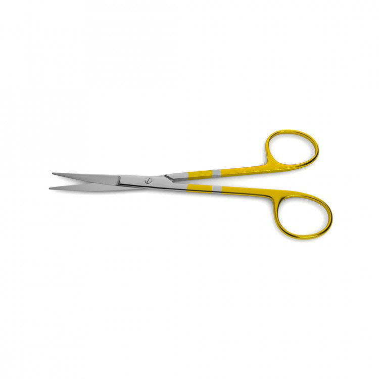 Goldman-Fox Scissors with the fine tips are handcrafted with tungsten carbide inlays to increase product durability and lifetime, while offering a sharp cutting edge. Designed for contouring and cutting gingival tissue, the micro serrated blades allow for cutting without slipping. MEDIZINISCH IMPEX Goldman-Fox Scissors are used to trim tissue, barriers, and granulation tissue on the underside of flaps or cut suture thread during surgery. The MEDIZINISCH IMPEX Golman-Fox Scissors are available with cured or straight tips. scissors combine the performance and precision of supercut with the durability of tungsten carbide cutting edges. These scissors: 1) feature tungsten carbide inlays on both blades for increased durability, sharper cutting edges and enhanced service life; 2) have one standard blade and one with micro-serrations; 3) feature inlays that are soldered onto the blades in a vacuum oven, not welded, resulting in a harder and more durable inlay than those welded on in a traditional process; and 4) feature gold-plated handles with stripes.